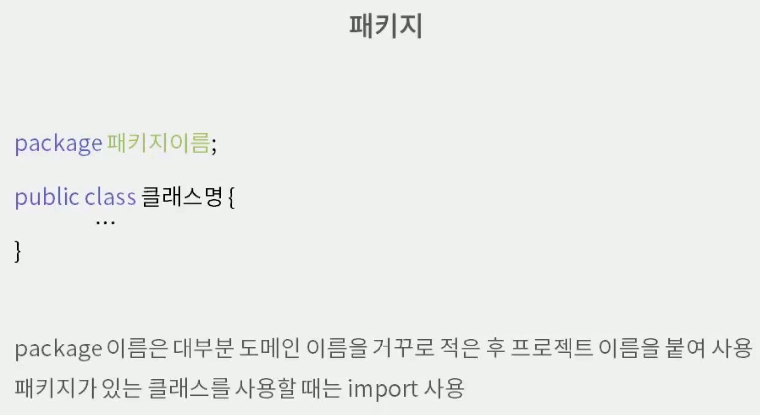 이처럼 Java도 관련된 클래스들을 폴더별로 관리하는데, 이 때 사용하는 키워드를 '패키지'라고 한다.