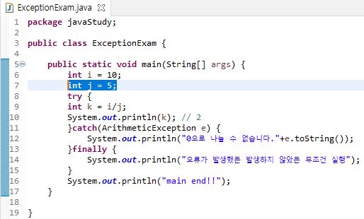 1. 두번째 매개변수 즉, j=0이면 Exception을 발생시킨다.