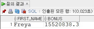 출력필드 [FIRST_NAME,보너스]