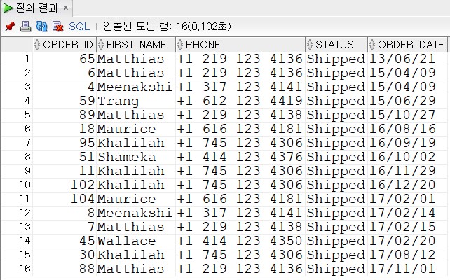 SELECT B.ORDER_ID, B.FIRST_NAME, B.PHONE, B.STATUS, B.ORDER_DATE