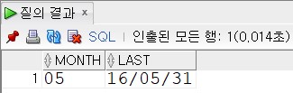 FROM (SELECT TO_CHAR(HIRE_DATE + 100, 'MM') AS MONTH, MAX(LAST_DAY(HIRE_DATE + 100)) AS LAST, COUNT(*),