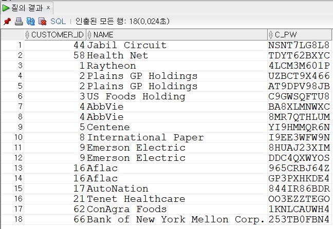 SELECT O.CUSTOMER_ID, C.NAME, DBMS_RANDOM.STRING('X', 10) AS C_PW