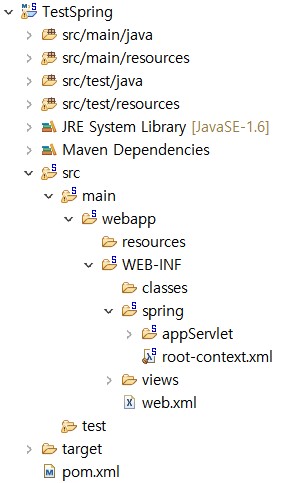 Spring Project를 생성하면 src 밑에 web.xml, servlet-context.xml, root-context.xml이 존재한다.