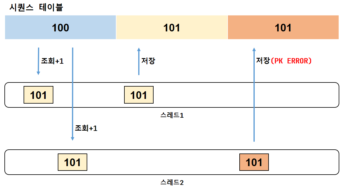 3-예외 시) INSERT시점에 DUP_VAL_ON_INDEX 예외가 발생하면 다시 1~2번 과정을 반복해 성공할 때까지 진행한다.