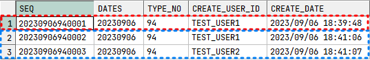 : 정상적으로 TEST_USER2 요청까지 INSERT 완료