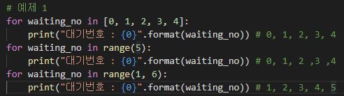 for 변수 in range(1, 6) 등 여러 방법으로 사용 가능하다.