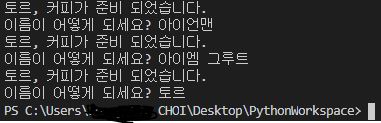 예제 3) 손님의 커피가 준비되었으면 드리고, 아니라면 계속 부르자. (커피의 주인은 토르, 주인 x는 Uuknown)
