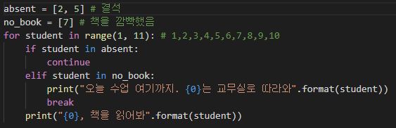 예제 1) 출석번호 0번 책 읽어봐. (그런데 2번과 5번은 결석)