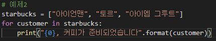 for 변수 in [리스트]