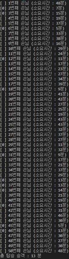 [0] 1번째 손님 (소요시간 : 15분)